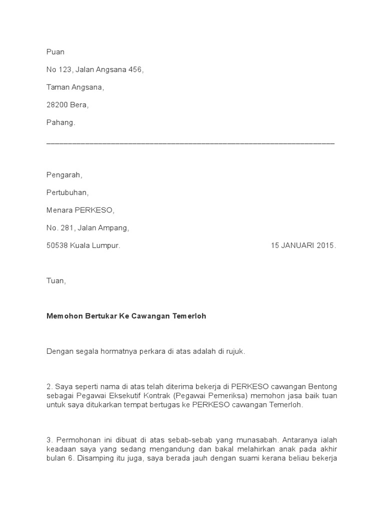 Contoh Surat Rayuan Menolak Pertukaran Tempat Kerja from gambarlah.files.wordpress.com Dokument yang selalu wajib dalam pelamaran kerja iyalah surat lamaran karena sebagai dasar kelengkapan dokument dokument lainnya. Dan berikut kami akan contoh surat lamaran kerja yang baik dan benar. Facebook twitter « newer post older post » search here. Surat lamaran kerja merupakan salah satu syarat untuk mendapatkan pekerjaan yang ingin anda dapatkan. Contoh surat pertukaran tempat kerja contoh surat mp3 & mp4. Jesteru arahan pertukaran yang secara tibatiba ini merumitkan lagi keadaan saya untuk membuat proses pertukaran pada tahun hadapan. Nah untuk membuat npwp ini dibutuhkan surat keterangan kerja yang berasal dari perusahaan tempat kamu bekerja. Cth sebab2 ketiga>>> tempat kediaman saya berdekatan dengan jabatan nak di tukar tu.ini dapat menjimatkan masa, kos dan juga risiko keselamatan diri.