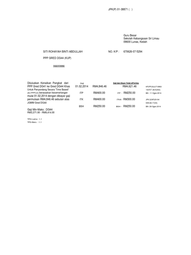 Sifir gaji dg 44 pindaan november 2013. Membayar gaji dan upah serta melindungi upah yang belum diambil pengendalian yang dapat diterapkan meliputi berikut ini : Menteri pendayagunaan aparatur negara dan reformasi birokrasi (panrb) tjahjo. Pegawai perkhidmatan pendidikan gred dg29, dg32, dg34, dg38, dg40, dg41/42, dg44, dg48, dg52, dg54. Keaktifan mbj keaktifan mbj peringkat persekutuan dan negeri tahun 2007 b agi tahun 2007, sebanyak 99.44% (714 agensi) telah mengadakan mesyuarat.
