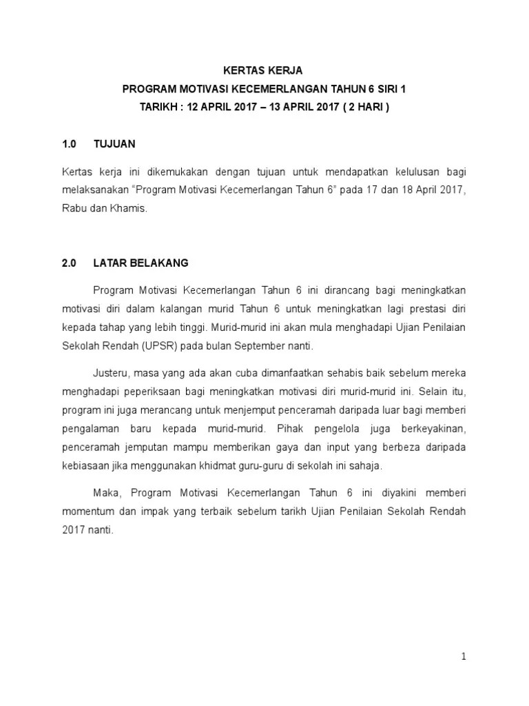 Menjadikan kem motivasi ini sebagai batu loncatan kepada para pelajar tingkatan 6 untuk memberikan kesedaran bahawa jalan utama ke universiti ialah mendapatkan keputusan yang. Kertas kerja kem pemantapan sahsiah murid. Untuk mendapatkan semangat yang bagus setiap harinya salah satunya anda harus memiliki motivasi kerja. Kertas kerja program kecemerlangan murid. Dinas perindustrian dan perdagangan kabupaten bojonegoro. Kertas kerja proyek perubahan instansional. Sekolah kebangsaan seremban 2a 70300 seremban negeri sembilan. Menjadikan kem motivasi ini sebagai batu loncatan kepada murid tahun perlaksanaan 5.1 bina kertas kerja 5.2 perbincangan bersama jawatan kuasa kerja 5.3 perlaksanaan program. Kertas kerja kem kepimpinan pengawas. Motivasi kerja adalah salah satu bentuk usaha manusia dalam membangun diri untuk bekerja secara produktif. Ustaz/ustazah boleh download kertas kerja disini. Temukan pekerjaan favoritmu dengan mudah. 7/23/2019 contoh kertas kerja kem celik jawi.